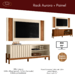 Lindo conjunto Bancada New Aurora com Painel Real. Um conjunto perfeito para sua sala. A moderna Bancada Aurora possui, pés em MDP, 1 porta ripada de correr que você pode variar o lado que quiser deixar posicionada, sempre deixando o seu ambiente de uma forma diferente, alegre e inovadora. , uma prateleira para colocar as suas decorações preferidas. O Painel Real é Extensivo, você escolhe o tamanho que desejar, de 150cm a 180cm na montagem do produto. o Painel Real suporta TV de até 65″.